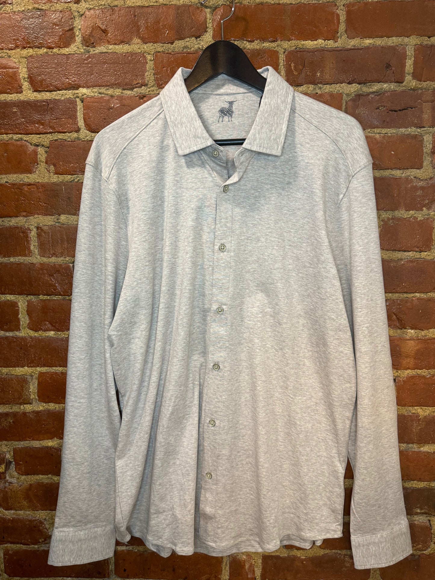 Introducing the Men's Long Sleeve Heather Grey Performance Button-Up Shirt—a stylish and versatile addition to your wardrobe. Perfect for casual gatherings or relaxed work settings, this shirt seamlessly combines comfort and sophistication.